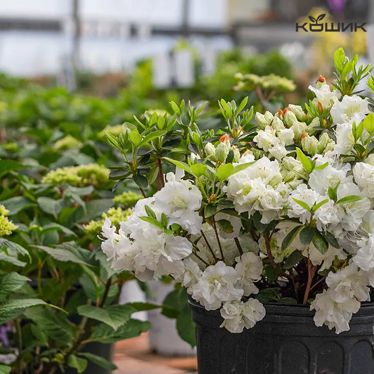 Вічнозелена азалія «Шніперл» (Schneeperle) — це елегантний декоративний кущ з компактною кроною та рясним весняним цвітінням у ніжно-білих тонах із легким рожевим відтінком у центрі квітки. Вишуканий вигляд і невеликі розміри роблять цю азалію чудовим вибором для озеленення терас, балконів, патіо або клумб. Завдяки гарній переносимості обрізки й повільному росту «Schneeperle» чудово підходить для вирощування у кашпо та декоративних горщиках.