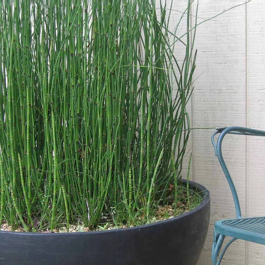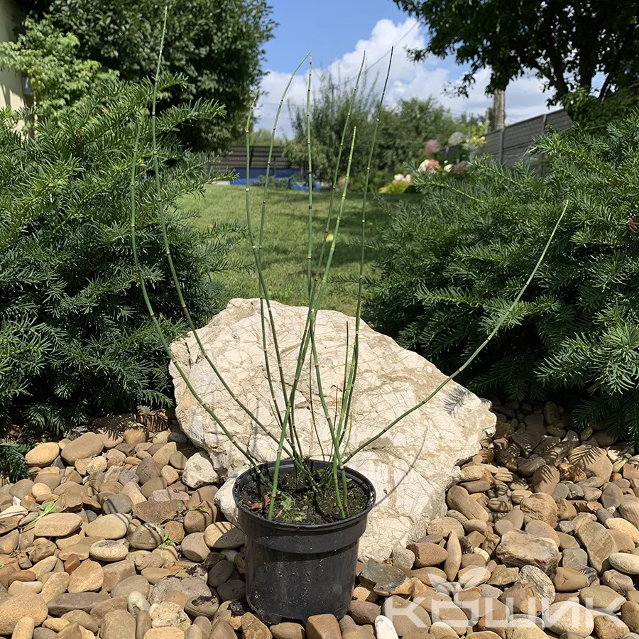 Equisetum hyemale ‘Robustum’ — це водночас динаміка та стабільна естетика у саду. Висота й структура підносяться у міксбордері, у водоймі — формують текстурний ансамбль, а в контейнері — стають виразним акцентом навіть в обмежених умовах горщика. В наявності саджанці у горщику С1