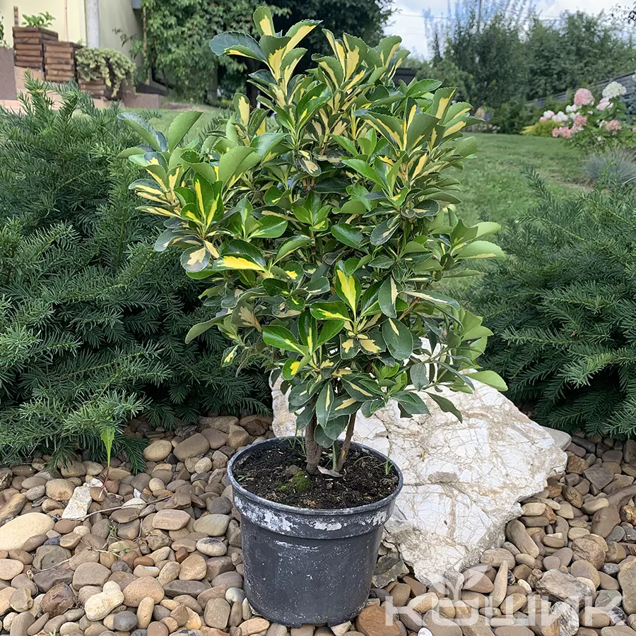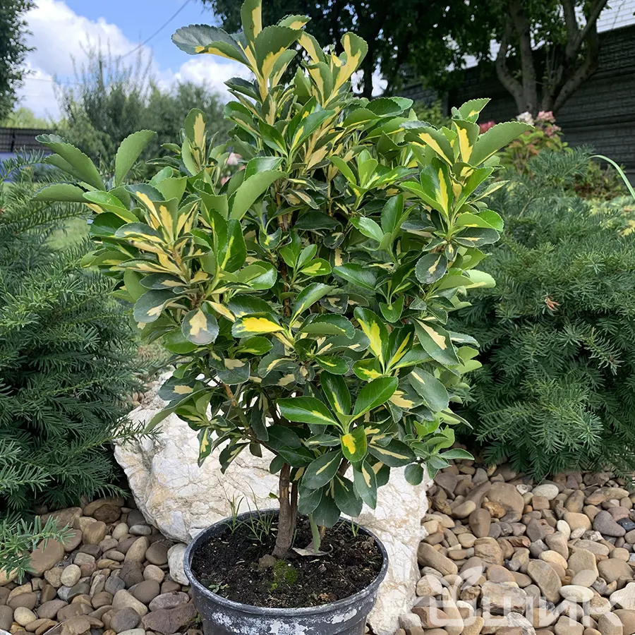 Бересклет Форчуна ‘Санспот’ (Euonymus fortunei ‘Sunspot’), також відомий як бересклет Санспот, бересклет повзучий або Euonymus Sunspot, – це яскравий, невибагливий і надзвичайно декоративний вічнозелений чагарник. Його головна особливість – дрібне, глянсове листя насиченого зеленого кольору з яскраво-жовтою плямою у центрі, що створює ефект «сонячного променя» на кожному листочку. Навіть узимку він зберігає своє забарвлення, додаючи барв у сад у похмурі місяці.