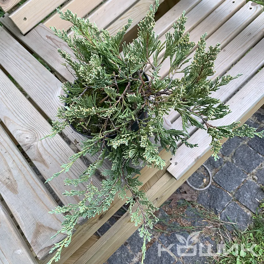 Ялівець лускатий ‘Blue Carpet’ – це декоративний вічнозелений хвойний чагарник, який цінується за свій розкішний зовнішній вигляд і невибагливість у догляді. Його густі розлогі пагони утворюють щільний і акуратний килим, вкритий ніжною лускатою хвоєю сріблясто-блакитного відтінку. Саме завдяки такому вигляду рослина отримала назву ялівець сланкий Блю карпет, що в перекладі означає «блакитний килим». Цей сорт додає саду елегантності та відчуття простору, гармонійно поєднуючись із каменем, декоративними травами та квітучими рослинами.