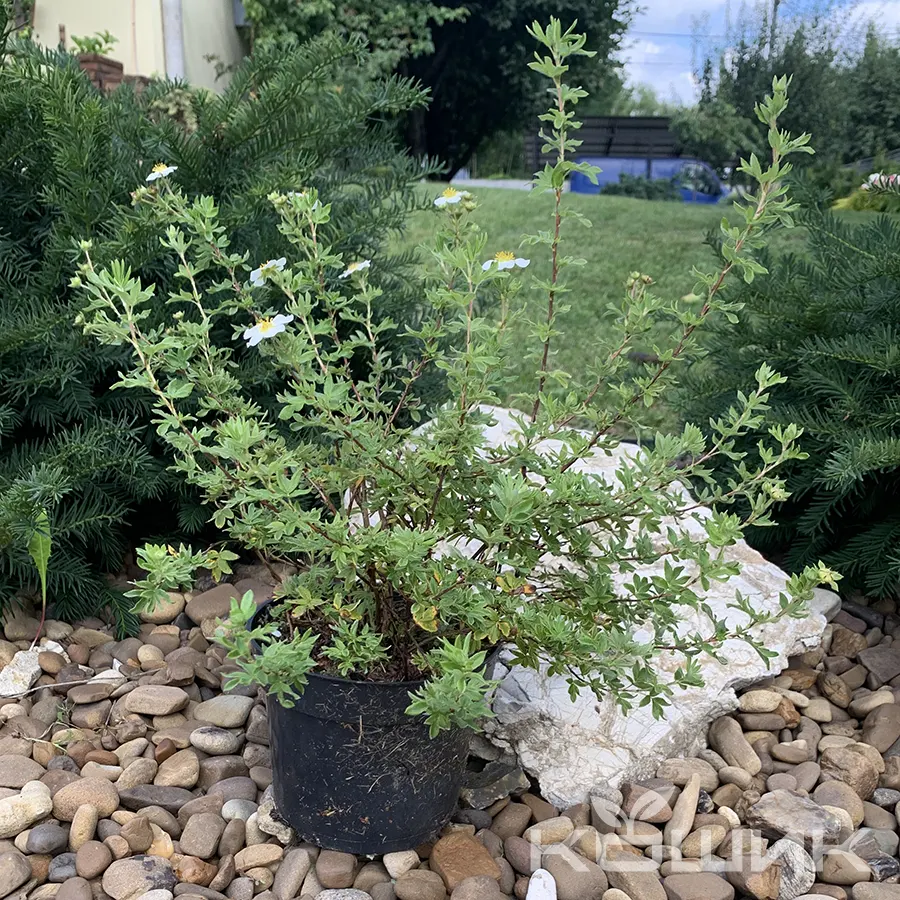 Висота дорослої лапчатки зазвичай досягає 60–80 см, крона округла та рівномірна, завдяки чому перстач чудово підходить для низьких живоплотів, бордюрів і групових посадок. Основна перевага сорту ‘McKay’s White’ – його великі ніжно-білі квіти з кремовим відтінком у центрі, які на тлі дрібного насичено-зеленого листя виглядають особливо контрастно та святково.